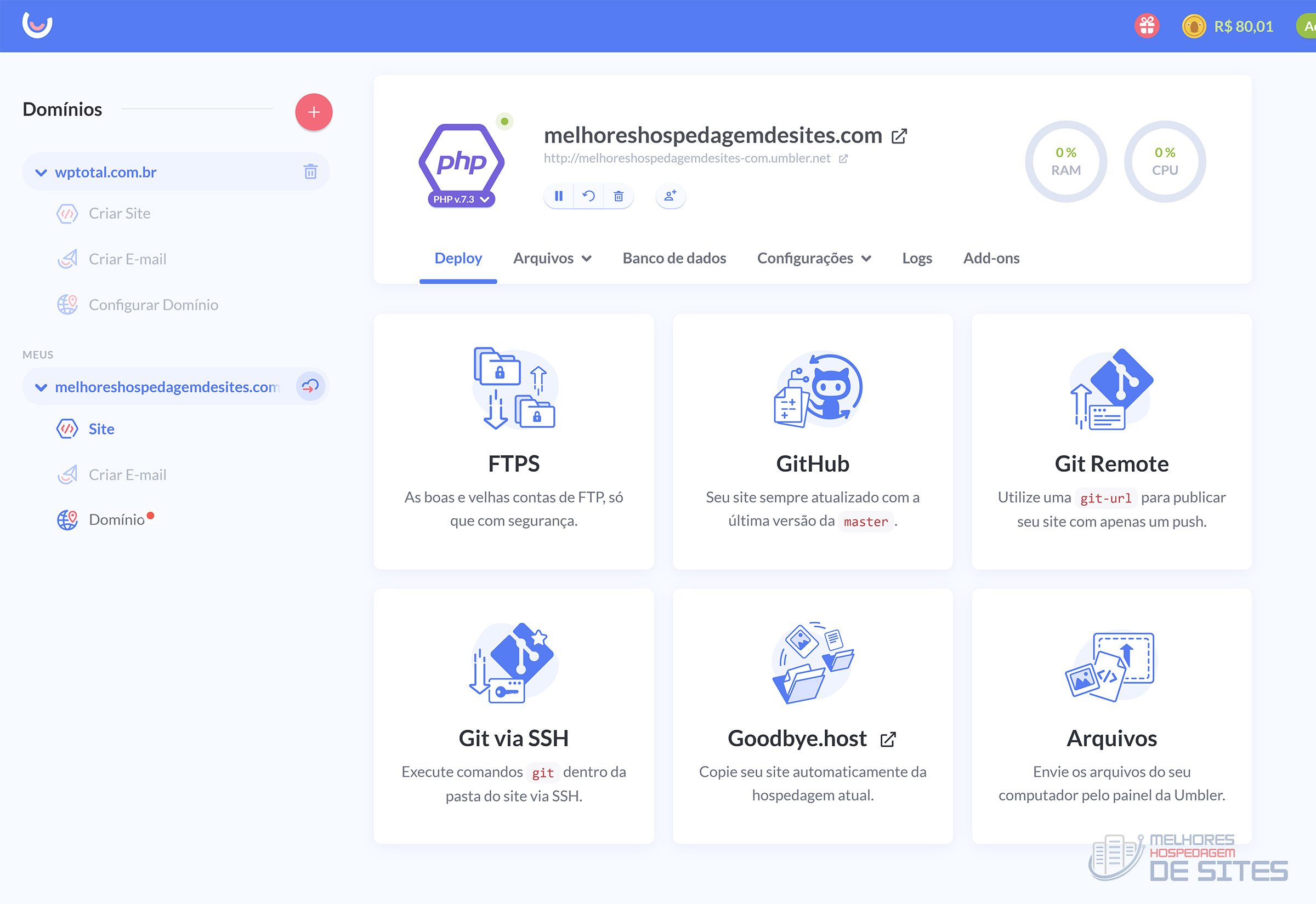 E também é uma ótima opção para quem deseja hospedar vários sites de forma segura e centralizada. A Umbler oferece um painel de controle que facilita bastante o processo de administração de vários sites.